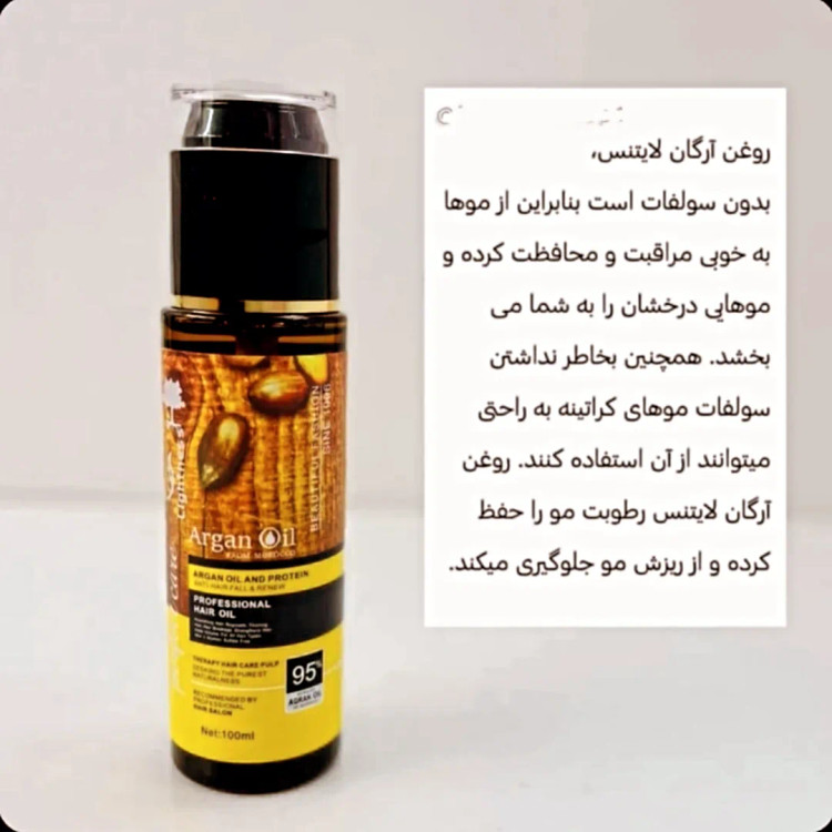 روغن ارگان لایتنس فاقد سولفات ضدریزش وتقویت ریشه مو ضدوز وضدخشکی مو حجم دهنده وضدموخوره مناسب انواع مو وگوهای کراتین شده ابرسان ومغذی موهای دارای ۹۵ درصد روغن ارگان خالص قدرت جذب سریع.